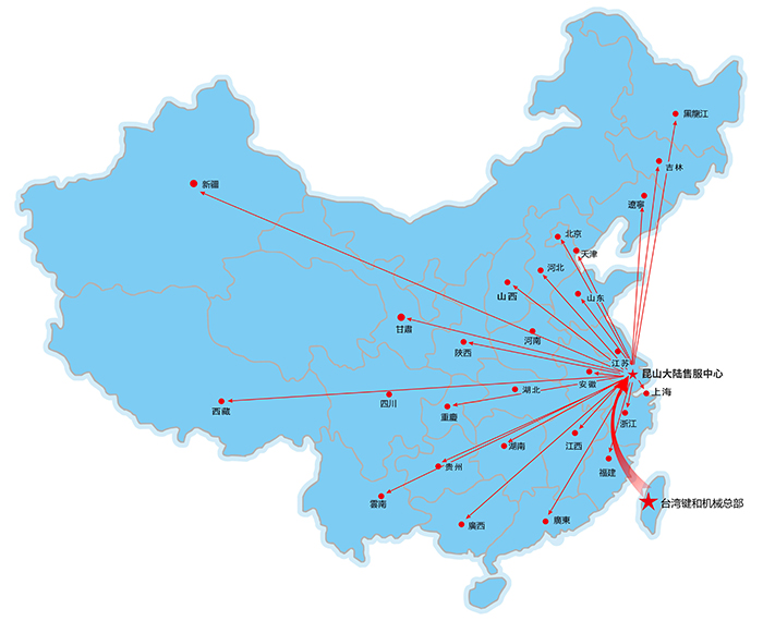 昆山嘉尼赫機械有限公司為臺灣鍵和機械股份有限公司在大陸設定的唯一子公司,本公司于2010年4月在昆山仕泰隆模具城成立,應市場需求于2015年2月搬遷至昆山周市鎮(zhèn)成立鍵和中國售服中心。設有獨立的零配件倉庫及機臺大修車間,機臺樣機展示廳。